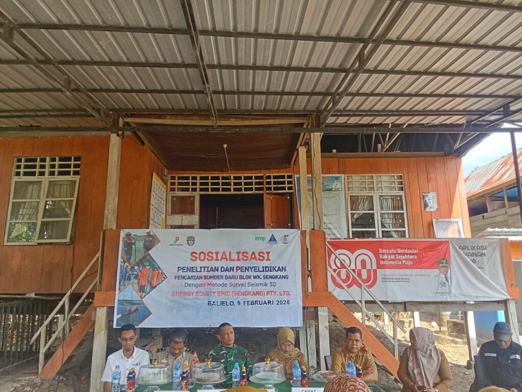 Wajoupdate,Senin, 09 Februari 2026 – ENERGI EQUITY EPIC (Sengkang) PTY LTD mengadakan sosialisasi tentang penelitian dan penyelidikan sumber baru blok WK Sengkang dengan metode survei seismik 3D di Desa Balielo.